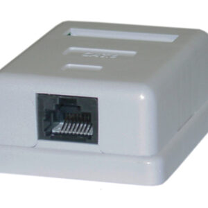 The Netix RJ45 Double Surface Mount Box (29-0020A) features a single CAT5e RJ45 8P8C port with Krone/110 style termination, ensuring reliable and efficient Ethernet connectivity. It exceeds Power Sum NEXT requirements for enhanced performance and is designed in a sleek white finish for professional installations. Ideal for secure and organized networking, it offers a durable and easy-to-install solution for various environments
